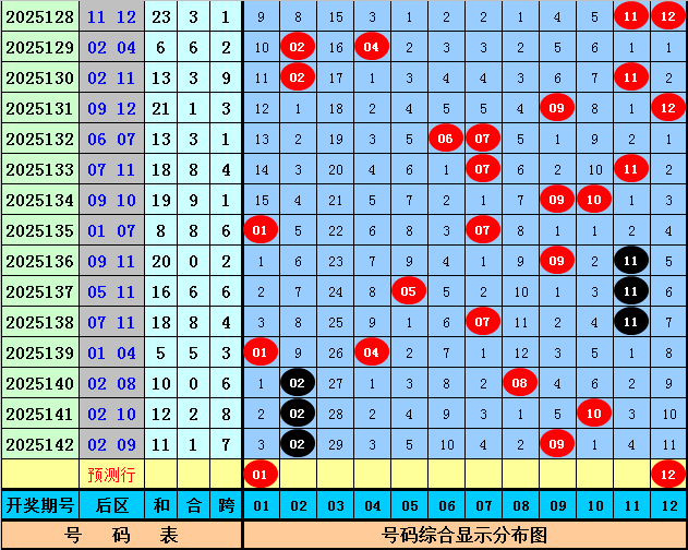 后区号码分析:在第143期历史同期开奖中奖,奖号06出现6次,奖号07 10出现4次,奖号01 02 04 08出现3次,奖号11 12出现2次,奖号03 05出现1次,奖号09没有出现。本期后区五码参考01、02、04、08、12。