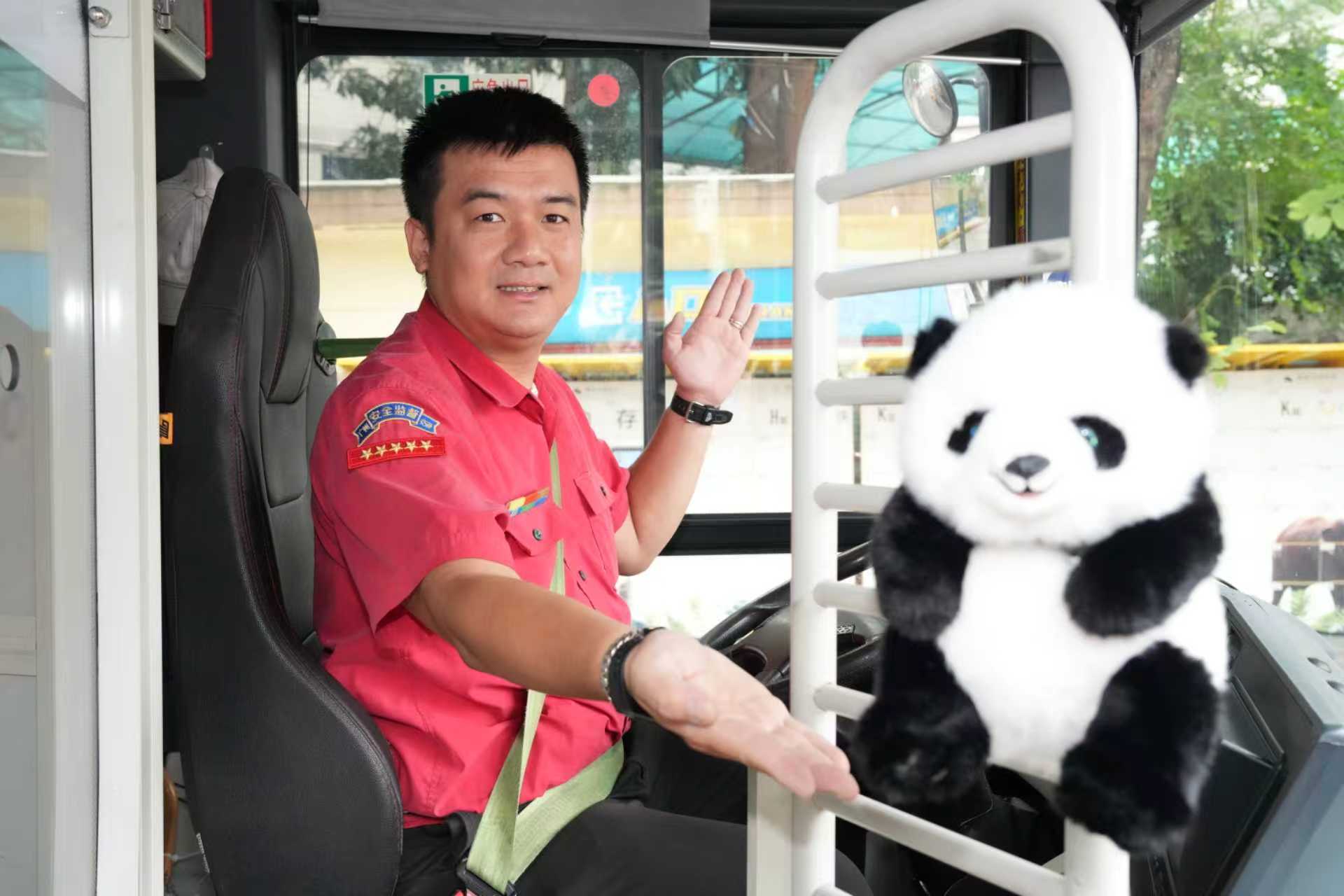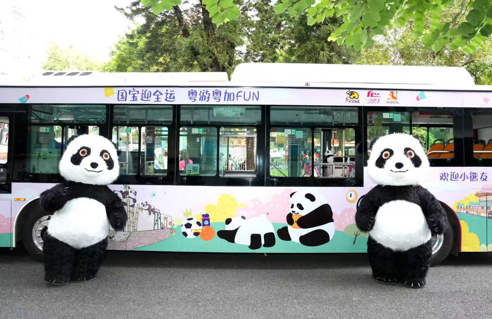 主题巴士上灵动呈现的熊猫“久久”与“友友”,这对出生于西班牙马德里的双胞胎兄弟,名字凝结着“中西友谊天长地久”的美好寓意。如今落户广州,恰逢全运盛事,成为连接城市与国际、自然与体育的“全运使者”。它们“跑”上公交车,与广州市民一同喜迎全运,传递着友好与团结的全运精神。