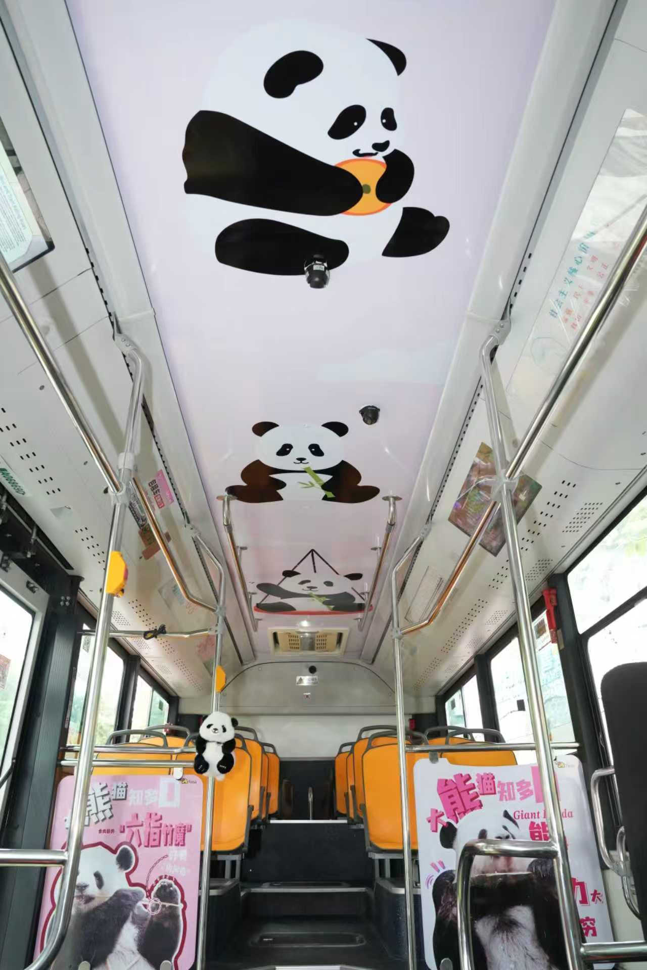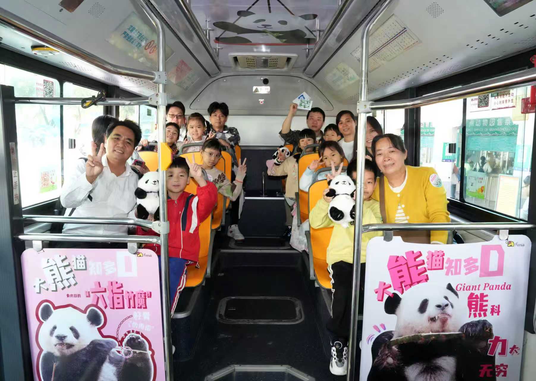 驾驶着这台巴士的司机师傅介绍,巴士的车窗上贴着的二维码,扫一扫就可以聆听大熊猫、非洲狮等动物的真实叫声,浏览图文介绍,车内电子屏循环播放“久久”“友友”在新家的生活趣态,以及“雅一”“星一”啃竹爬树的生活实录。车内挡板区张贴“大熊猫知多D”趣味知识海报,揭秘大熊猫的“省电模式”与素食习性。
